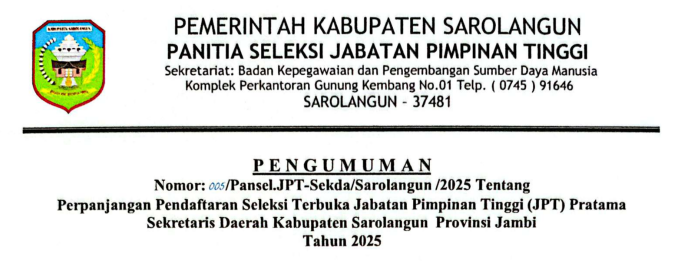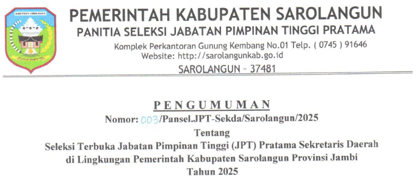 PEGUMUMAN Nomor : 003/Pansel.JPT-Sekda/Sarolangun/2025